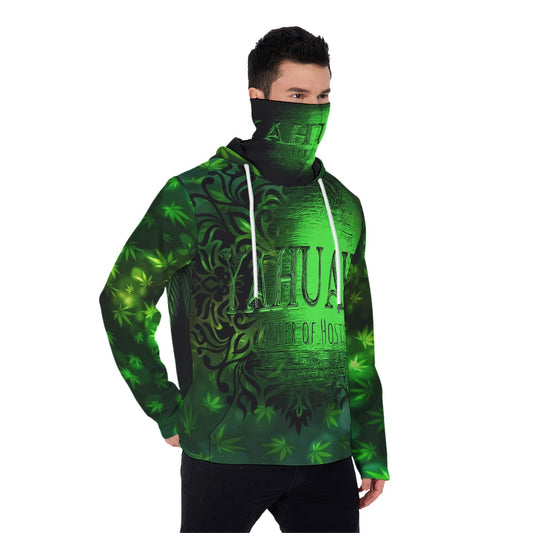 Yahuah-Green Master 01 Men's Designer Pullover Hoodie with Face Mask